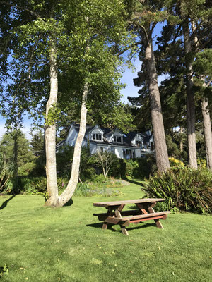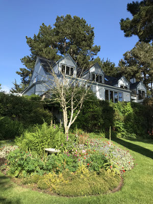 Das Herzstück des Lost Whale Inn ist die große Terrasse und der traumhafte Garten mit den großen alten Bäumen vor der atemberaubenden Kulisse des Pazifik. Im Garten findet man diverse Möglichkeiten um die Kulisse auf sich wirken zu lassen - und das ein oder andere Glas Wein zu genießen - von Gartenbänke und -liegen, einer Feuerstelle bis hin zu einen Jacuzzi und einer Sauna.